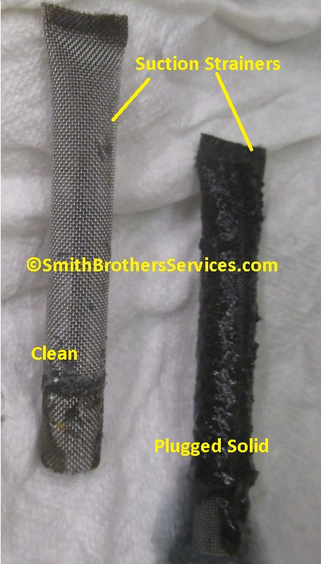 When you find it loaded with bits of metal, it can indicate wear inside the Gear Pump. When you find it crushed, you know that the fluid in the unit got thick, or turned to slush, and since the Gear Pump is a positive displacement pump, it will pump slush, and when the semi-solid tries to pass through the fine mesh of the filter, it crushes it. The filter was designed to filter fluid, not solids. So finding the crushed filter means at some point it froze, or turned into a slurpee.